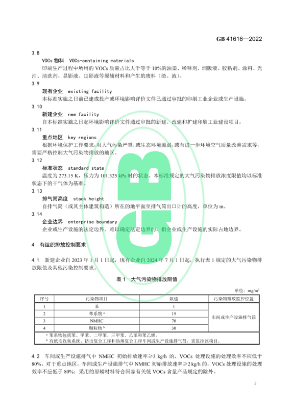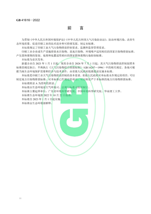 最新发布排放标准,印刷工业企业或生产设施排放水污染物、恶臭污染物、环境噪声适用相应的国家污染物排放标准,产生固体废物的鉴别、处理和处置适用相应的国家固体废物污染控制标准。