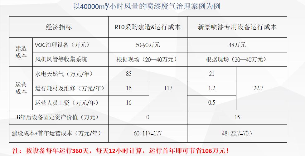 纳米微气泡VOCs治理设备,以高压水泵为动力,通过纳米微气泡装置产生纳米气泡,微气泡由于空化效应,在10-9秒时间内溃灭,瞬时产生5,000k的高温和1,800atm的高压,在水中释放出大量的羟基自由基,与捕捉到的有机气体发生机械剪切、热解、自由基氧化、超临界水氧化的物理化学反应,达到分解和去除有机废气的作用。因日常运行中只需要用到电和极少的水,设备运行成本是市面上同类型有机废气处理设备50%以下。以下图片为例,4万立方米每小时的风量,成本大概是70.7万元/年,与RTO相比,一年可节省106万元!直接省出一套房的价格!